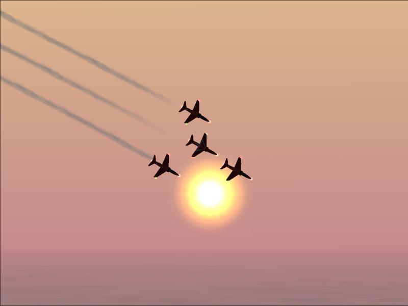 FS2002 “Red Arrows” Display Team “Gypo Section” GMAX Update A must for all ‘Reds’ fans, this file is an upgrade for the file REDPACK7.ZIP (above) It includes voice callouts for ALL the animations in REDPACK7, by Mike Ellis; several new gauges by Matt Kaprocki; following aircraft in the animated mirrors, by Mark Beaumont and Kari Virtanen; another genuine flight map of a circuit from RAF Scampton; an improved main fuselage texture (saved both with or without mips, depending on preference) and updated aircraft display and panel operating notes/illustrations, including the workings of Eric Marciano’s TCAS Radar; by Mark Beaumont. File name: RED7UPD.ZIP. 3.6MB