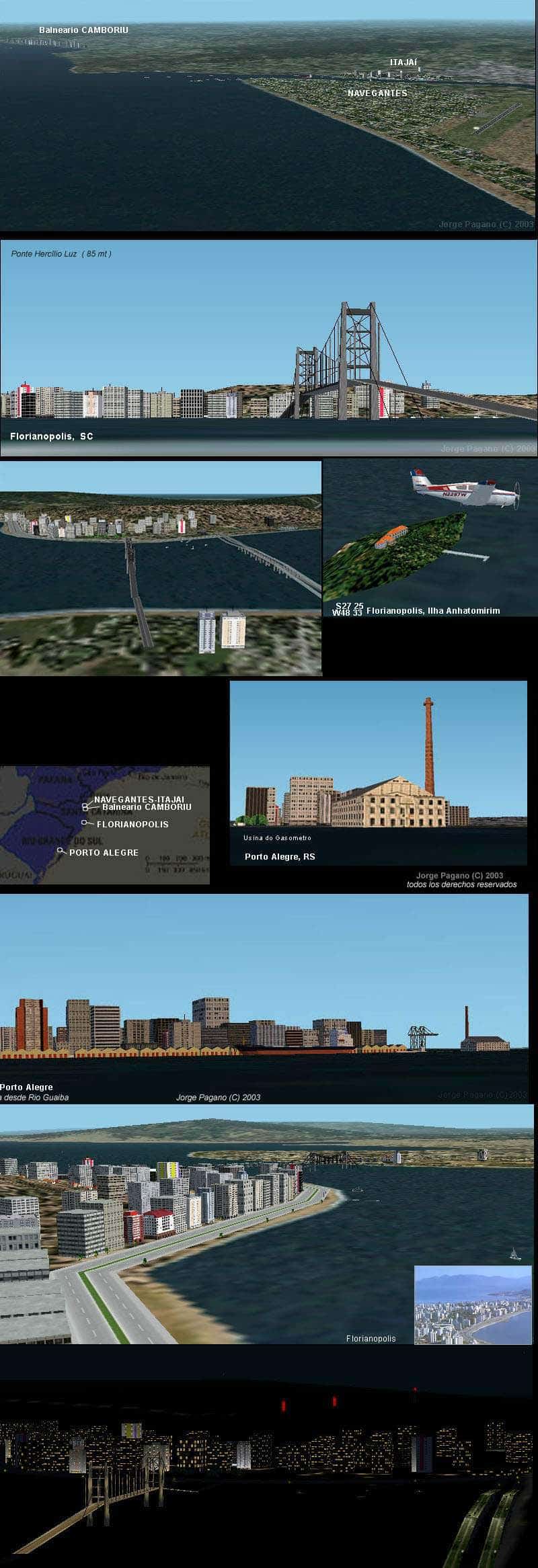 FS2002 Southern Brazil Cities. . Upgrades the cities of Florianpolis, Navegantes-Itajai, Balneario Camboriu and Porto Alegre.Adds bridges, roads, villas, custom buildings, new textures, landmarks and more.Porto Alegre hosts the World Social Forum each year. It does not include the airports. By Jorge Pagano. 1.9MB