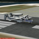 FS2002 U.S. Navy E-2C Hawkeye. The Grumman Hawkeye is an all weather, carrier-based tactical airborne warning and control system platform. Features full animation using Gmax, full virtual cockpit with night lighting, folding wings, passenger door, nose wheel steering, tail hook, rotating radar dome. Includes panel (KingAir gauges) and turboprop sounds. By Rick Sasala. 9.2MB