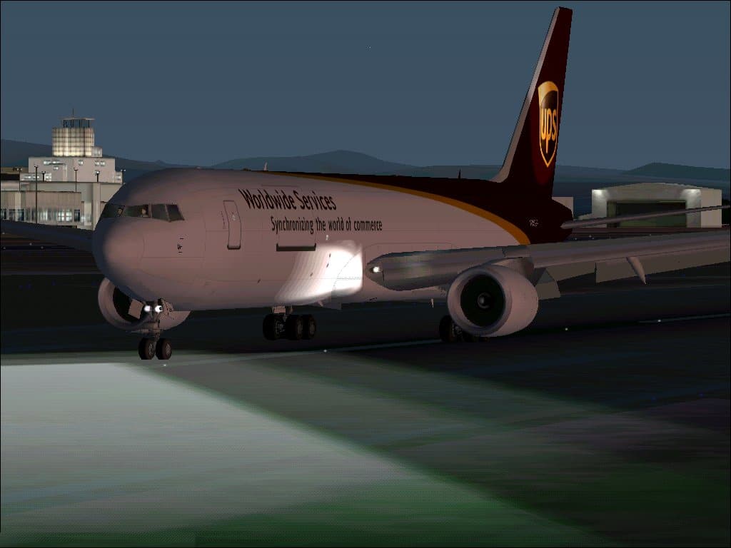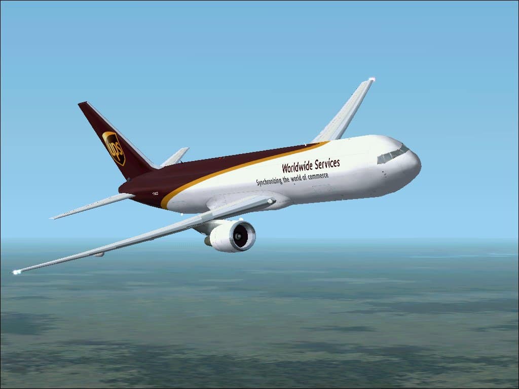 FS2002 United Parcel Service Boeing 767-300. The sleek new colors of UPS are done proudly in this repaint of POSKY’s Gmax B767. Authentic markings, including font and logos, were reproduced using current photos to provide a correct livery. Night lighting and wing vortex effect included. A definite improvement from the old livery! Includes 3-screens panel by Kenneth Francis. Original aircraft by Project Open Sky. Repaint by Kevin Sparkuhl. 3.1MB