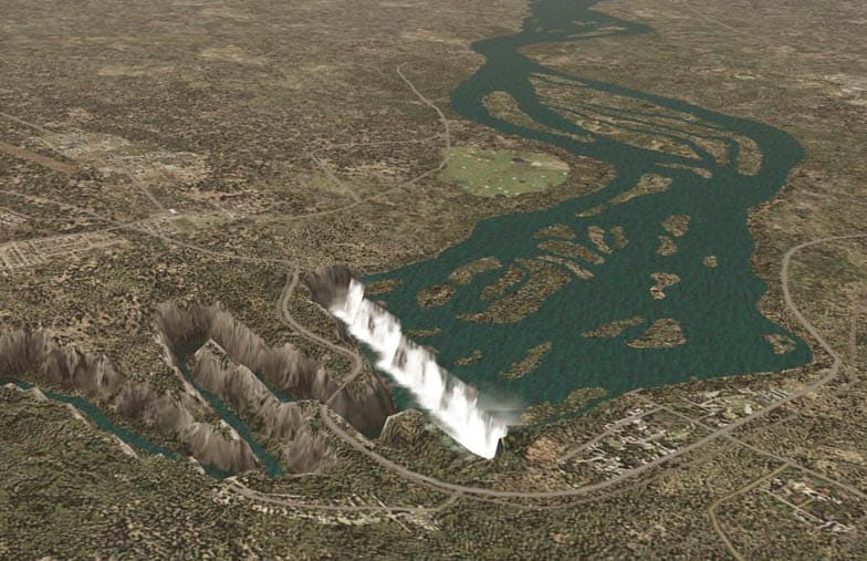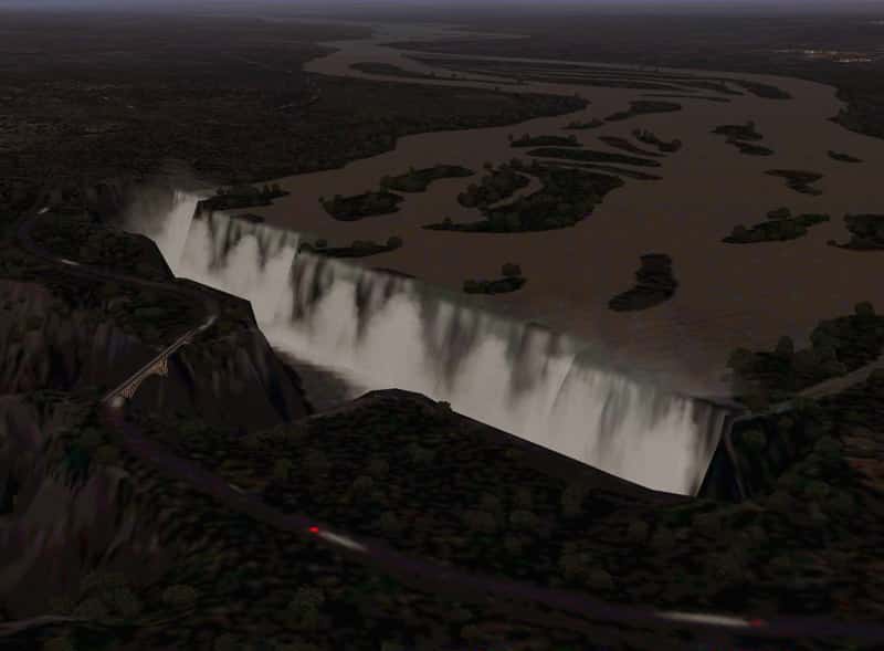 FS2002 The Victoria Falls of the Zambezi River. Authors: Holger Sandmann, Zambezi, effects, lakes, transportation network, landclass/waterclass Johan van Wyk. 2.5MB Update: Achieving downward compatibility of complex scenery add-ons is not an easy task 😉 In our recently released FS2002 version of the Victoria Falls (vicf_fs8.zip) we accidentally included an older version of a scenery file, which made FS2002 crash in the vicinity of the waterfall. Our apologies! This patch is hopefully the last to provide FS2002 users with a working Victoria Falls scenery. It requires that you first install vicfalls_fs8.zip as described.. 11K