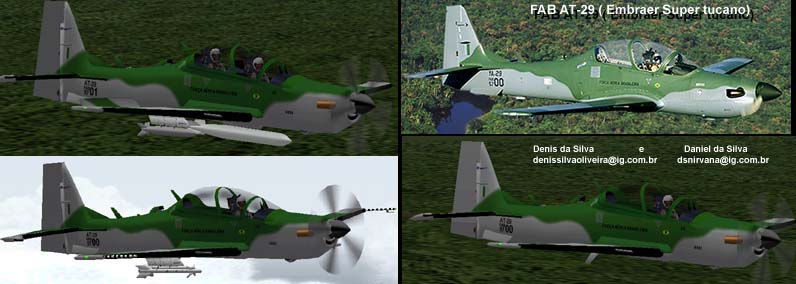 FS2002/2000 FAB AT-29 ( super tucano ALX ). The new multi-purpose Super Tucano – based on the successful EMB 312 Tucano – was developed for training and operational missions from remotely located, unprepared airfields deprived of support infrastructure. Model & texture: Daniel da Silva. 1.3MB