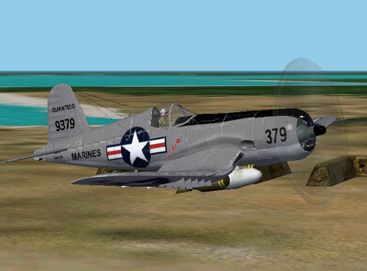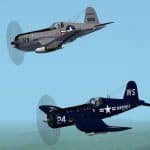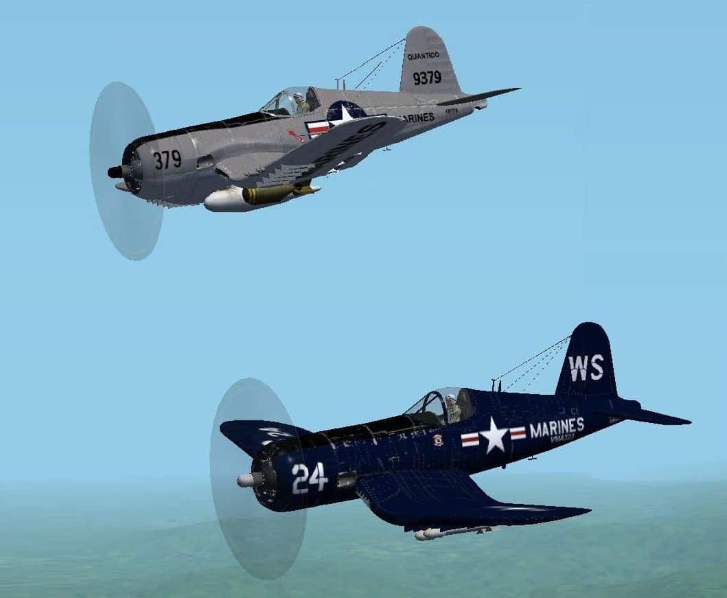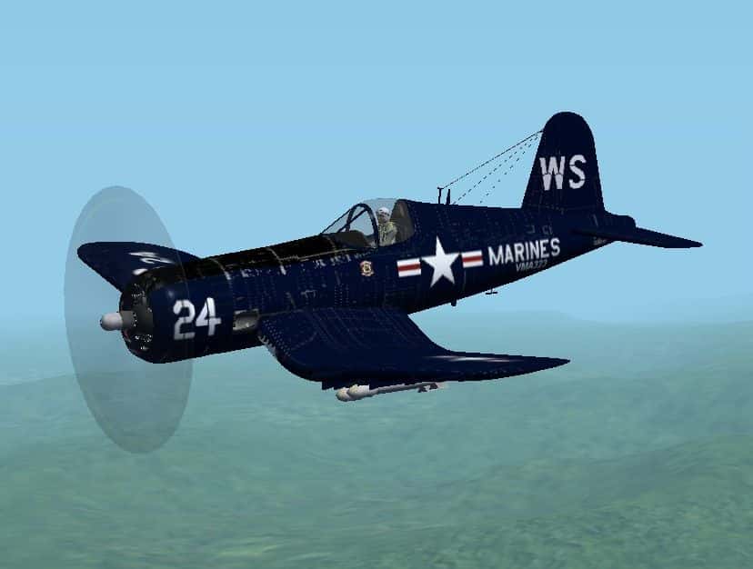 FS2002/CFS2 Corsair AU-1. AU-1 The AU-1 was a dedicated low-level attack version of the F4U. It was powered by a R-2800-83WA with a single-stage supercharger and water injection, that delivered 2800hp at sea level. More armour was added for the pilot and the engine. Gross weight rose to almost 10 ton.Performance had, of course, decreased. The AU-1 was rather unpleasant to fly, but it was a terrible ground attack plane. Only 111 were built between February and October 1952. You get 2 models. One grey one flown in 1957 and a blue one flown in Korea by the “Death Rattlers”. Original mdl by Guy HULIN. Adapted with permission for CFS2\Fs2002 with new Mdl, Air, Dpfiles and textures by A.F.Scrub. 3.2MB CFS2/FS2002 Folding Wing Update for Corsair AU-1 and F4u7 This update converts the Corsair AU-1 and F4u7 to Folding wings and Working tailhook. Under FS2002 the planes directly appear now with the aircraft types. Replace the original airfile and aircraft.cfg by the new ones. A.F.Scrub. 51K