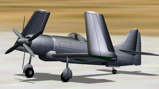 FS2002Pro/CFS2 Boeing XF8B-1 This plane was developed at the end of WW2 to take advantage of the huge 28 cylinder P&W R-4360. This FSDS2 model has moving parts including folding wings, tailhook, sliding canopy and contra-rotating propellers. It has a pilot figure and a specular color shine. The sound and panel are aliased to the F4U Corsair and a .dp file is included. By Paul Clawson. 378K