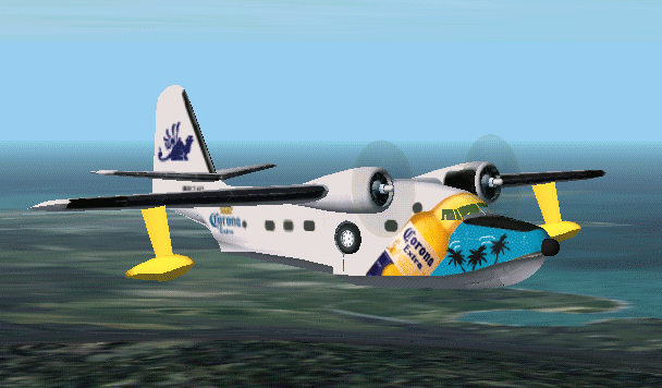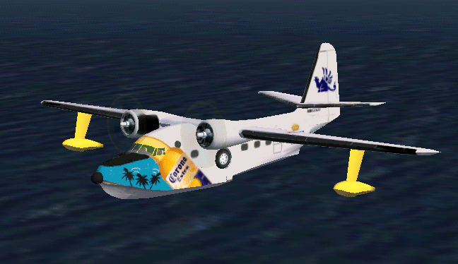 HU-16 Albatross Corona is a tropical delight that boasts a hybrid paintjob that I created based on a Pan Am Airbridge design I once saw and my own creative influences. I have based the aircraft on Cozumel Island as that is my hang-out of choice South of the border. Original aircraft GMAX design by Greg Pepper. Water landing wake and spray effect by Jolian Light. Engine sounds provided by Aaron R. Swindle’s Skysong Soundworks (C-47). FS2k2 Seaplane flight dynamics and Corona re-paint by Scott Roy. 4.2MB