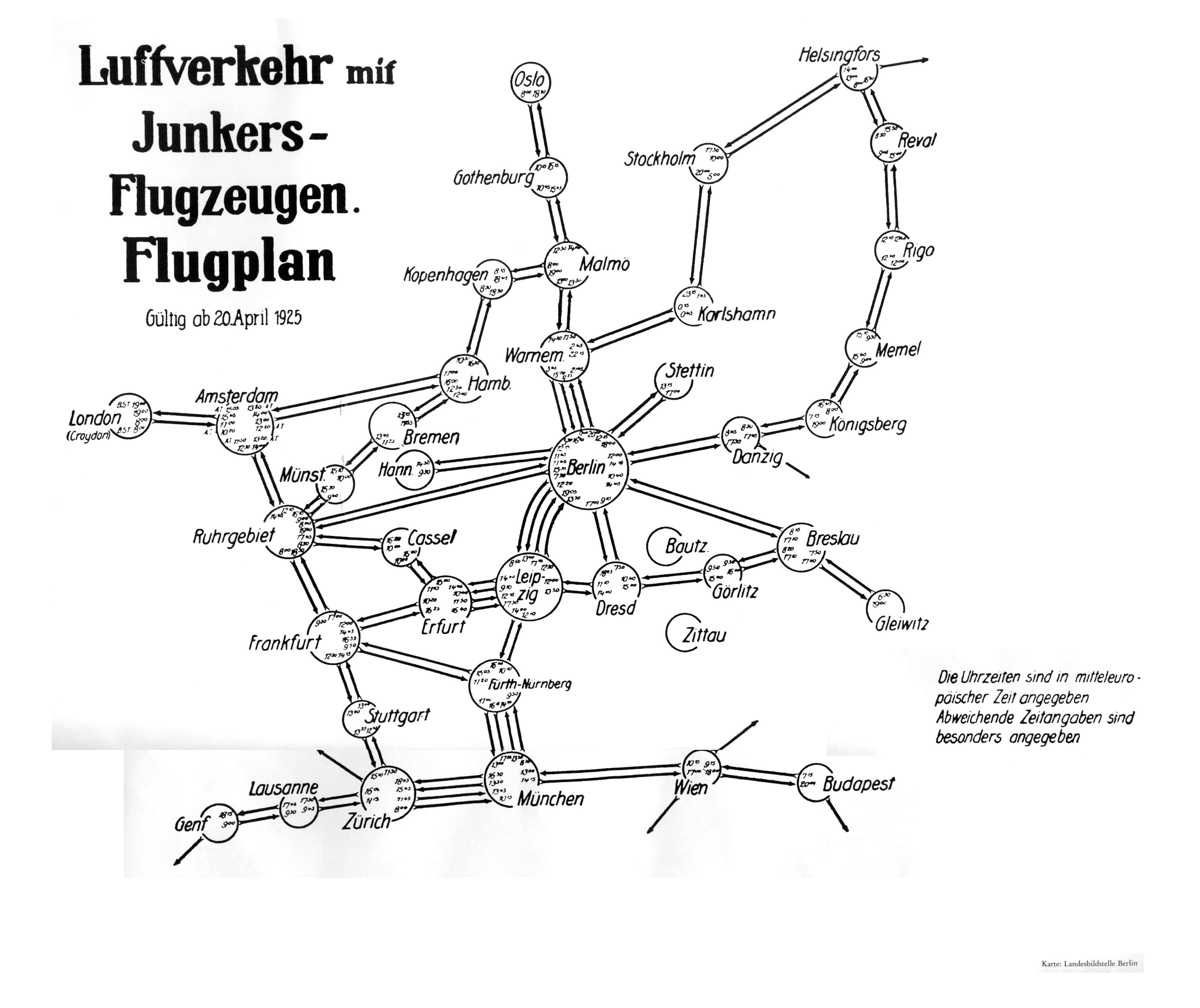 Junkers Flightplan from April 20, 1925 Hi While strolling through Berlin, I happened upon a stand that was selling copies of this Junkers Timetable for 50 Pfennig. I was thinking someone could use this to build an Adventure for FS 2002 or whichever- possibly using Pierino Primavesi’s beautiful Junkers Ju-52. Its rather large so that you can zooom into the details. I assume the copyright is Landesbildstelle Berlin as is stated at the bottom of Karte although if this stand was printing tons of copies, it probably can’t hurt to post it. But selling may be a no no. Roger Moritz. 631K