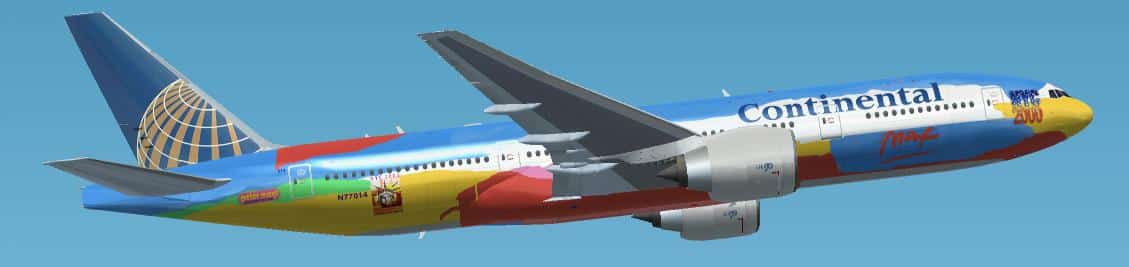 Meljet Continental Airlines B777-200ER Peter Max livery. Thanx for downloading my repaint for the Meljet B777 by Melvin Rafi. This is a repaint of the Continental Airlines B777-200 Peter Max livery. This livery may not be distributed for a charge, or uploaded to any websites/servers/etc without being granted written permission by me. Contact info is below. Corey Ford. 3MB