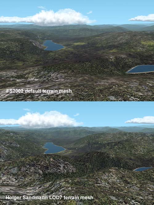 New 300-m (LOD7) Terrain Mesh of British Columbia and Southeast Alaska. Mid-resolution (300-m) terrain mesh for the entire province of British Columbia (950,000 square km) and the Alaska panhandle southeast of N60 W139. Made from 250m-resolution source data without oversampling. Easy on frame rates and hard drive space. It transforms the rounded mountains of the default terrain mesh into a much more realistic representation of the diverse topography of this beautiful corner of the world. Experience the spectacular scenery between Vancouver and Atlin, Juneau and Fort St. John, and Mount Robson to Clayoquot Sound. Fourteen independent mesh tiles allow you to select the region(s) you like best. Several high-resolution add-on meshes will be uploaded separately. By Holger Sandmann. Part 1 of 4: All areas north of 57 degrees. 6.3MB Part 2 of 4: All areas between 54 and 57 degrees North. 6MB Part 3 of 4: All areas between 51 and 54 degrees North. 5.9MB Part 4 of 4: All areas between 48 and 51 degrees North. 6.5MB