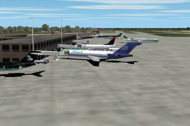 Payware addon: Richmond International, Virginia series is KRIC, l, a fairly large commercial jetport serving Richmond Virginia, the state capital. Detailed terminal area, cargo area, general aviation areas, and Virginia Air National Guard area are included as are some pretty nice night lighting effects. Other files in this series are pamdva.zip, crisfield.zip, and charlottesvile.zip. Lago’s FSSE (payware) support pack 2 minimum is required to view this scenery. By Lauren Robison. 183K