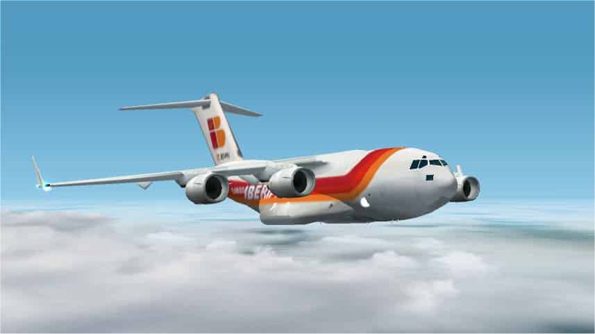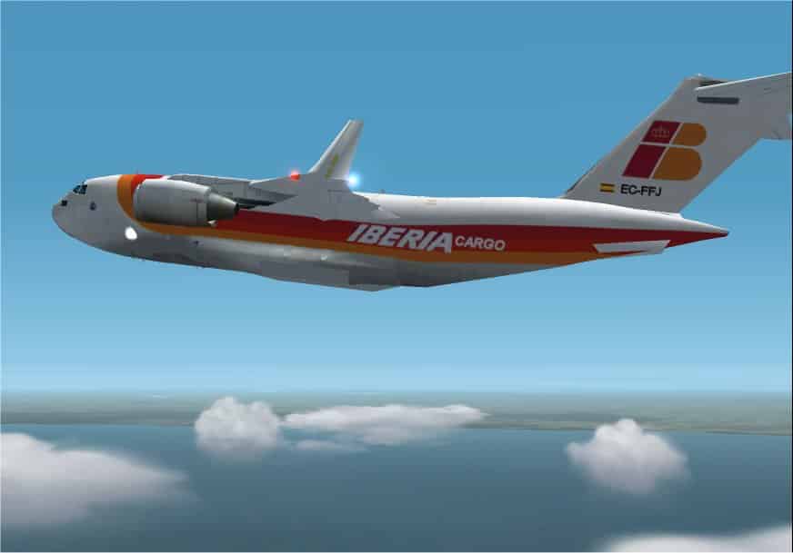Project Opensky BOEING C-17A Iberia Cargo Livery repaint for FS 2002 by Edmundo Martinez 32-sided based Variable Sided Fuelage (POSKY Original Technique) Maximum moving parts (all highly detailed) night lighting, FS 2002-style lights. Design: Owen Hewitt with assistance of Gary Carlson, Jim Goldman & Hiroshi Igami. Textures: Edmundo Martinez. Animation: Mitsushi Yutaka Flight Dynamics: by Steve Small. 2.7MB