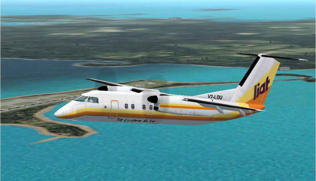 Repaint Dash 8 100 LIAT – textures only. . Leeward Islands Air Transport Reg ID: V2-LDU Liat is based in Antigua (TAPA). They island hop from Puerto Rico right on the down the chain of islands to Georgetown Guyana. Textures only. Repainted by Sean MArlin. 352K