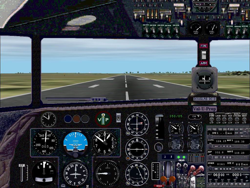 Revised FS2002 Val-U-Prop Douglas DC-3 CargoLiner Plane and Panel. Val-U-Prop is a rogue airline based in Bloomington, Indiana, that flies everything from VIPs to sheep manure anyplace and anytime. VP’s motto is “No job too small; No fee too large,” and our DC-3’s, DC-4’s, DC-6’s and DC-8’s can be seen hedge-hopping into various obscure airports throughout the world. This aircraft is an all-aluminum re-paint of the fabulous DC-3 OH-LCH by Jan Visser, Erik Ellis, Roy Chaffin, Ian Roper and Bill Rambow, to which FS2002 lights have been added. It has military capability, including machine guns and NUCLEAR/GPS/JDAM guided bomb launch. Panel includes everything on main panel, except for GPS and (optional) default radios, so there is no tabbing. The very aluminal wing views were shot by Thomas Klein, and the vintage C-47 cabin was photographed by Tom Turner. Gauges by James Underwood, Ernie Kennedy and Dai Griffiths. A-bomb and machine guns by Chris Trotter. Compiled By James Underwood. 6.6MB