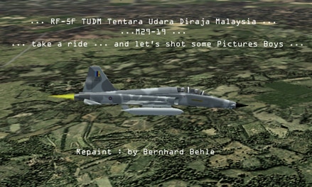 RF5FTUDM.zip RF-5F* TUDM Malaysian Air Force (*painted Imagination) requires F-5F_TigerII_CO_t.zip (here) for full function… with updated and preassembled *.cfg & *.air File for that Package … see *.pdf Doc inside Bernhard Behle. 2MB