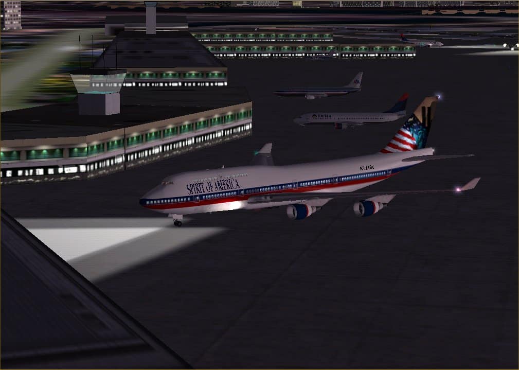 Spirit Of America – Repaint of the FS2002 default 747 in Patriotic colors – textures files only. . Repaint by: James Daniels. 1.2MB