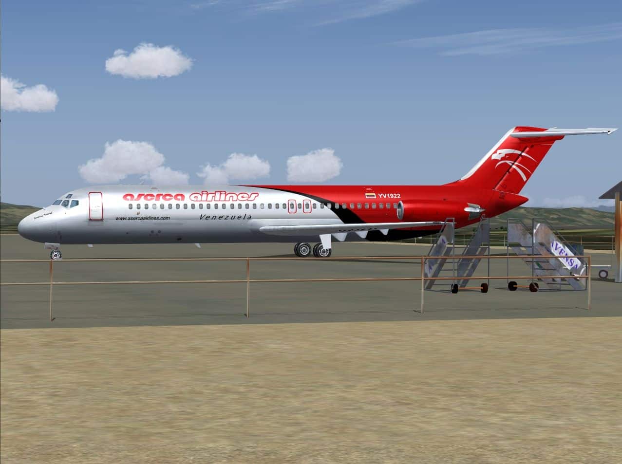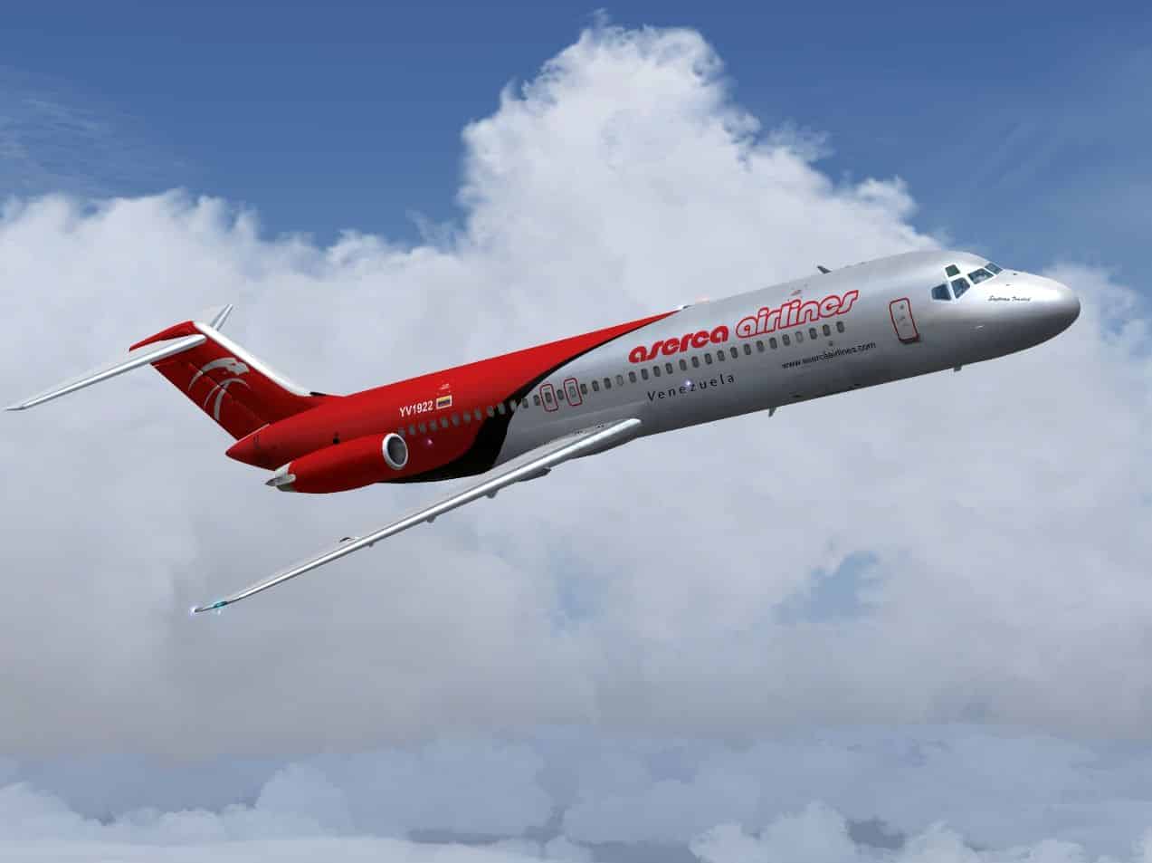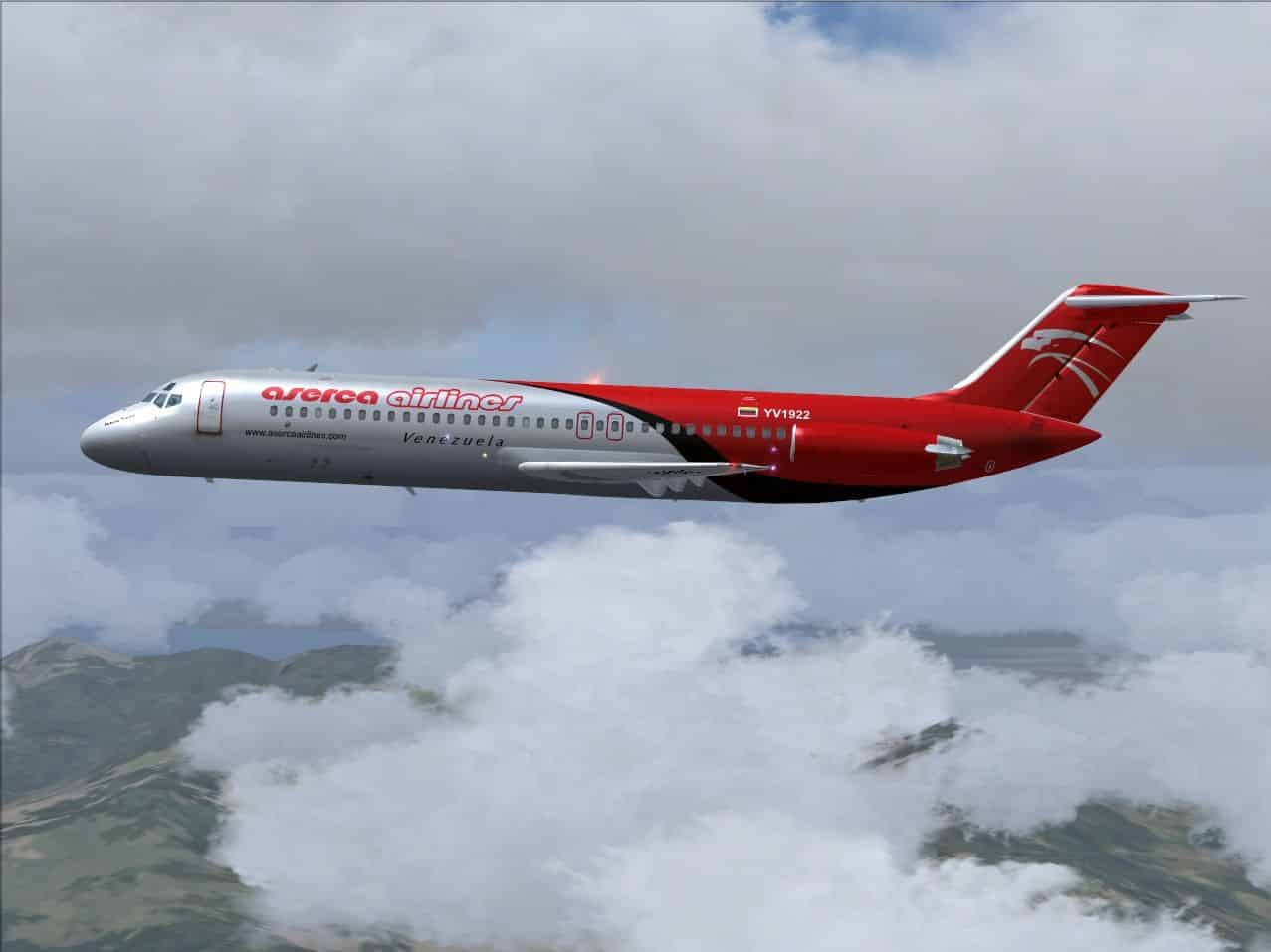 McDonnell-Douglas DC-9-31, cn 48138/1021, registration YV1922, named “Santisima Trinidad”, wearing the actual colors of Aserca Airlines. Updated textures only for SGA’s latest Douglas DC-9 series release, (SGA930.zip), based on original characters from Roberto Leiro, reedited by Juan Ernesto Oropeza. By Roberto Leiro and Juan Ernesto Oropeza.