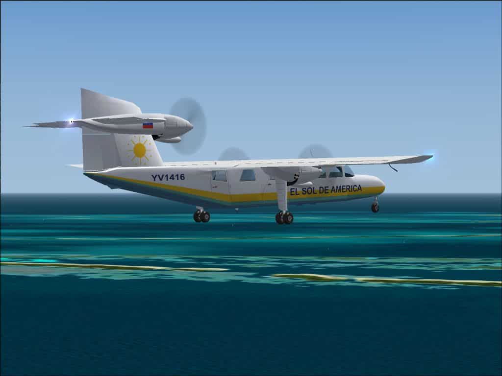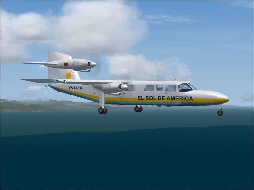 FS 2004 Britten Norman Trislander BN-2A Mk.III El Sol de America YV1416 Textures only -3 El Sol de America YV1416 Trislander repaint. This curious aircraft flies to Los Roques Island, Venezuela, in touring trips. Requires original BN-2A Mk.III-3 model and FDE’s by Marcel Kuhnt ( here – external link – please report when dead). By Juan Ernesto Oropeza. 1.5MB