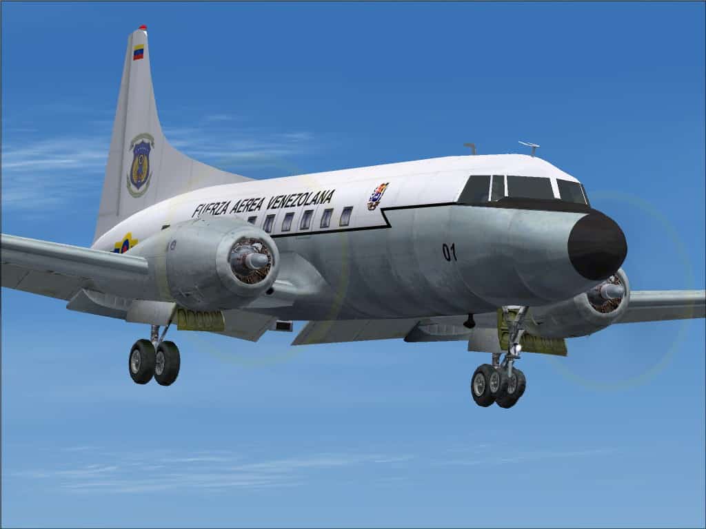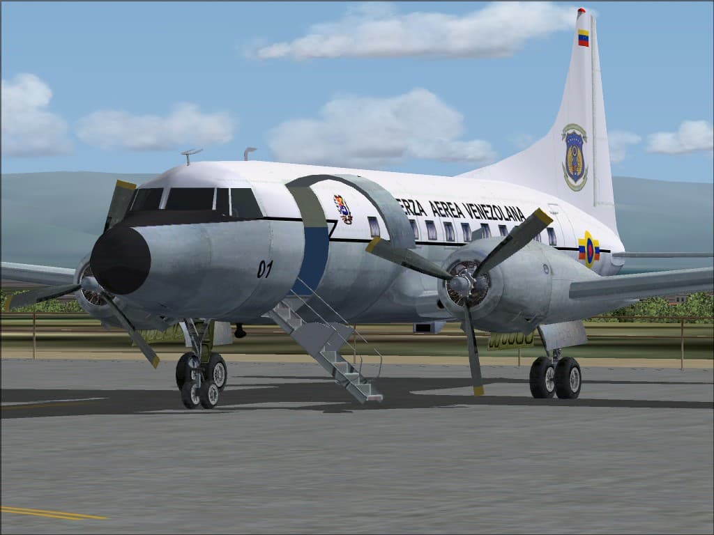 FS 2004 Convair C-131 Fuerza Aerea Venezolana FAV-01 Textures only. This aircraft (Convair 440 military version),was used in the 50’s by the Venezuelan Air Force during the presidential period of General Medina Angarita for VIP transport along the Beech D-18 (C-45) and Martin 202 fleet transport. Original model, textures and FDE by Greg Pepper and Tom Gibson. You must download the whole original aircraft here. By Juan Ernesto Oropeza