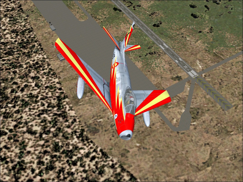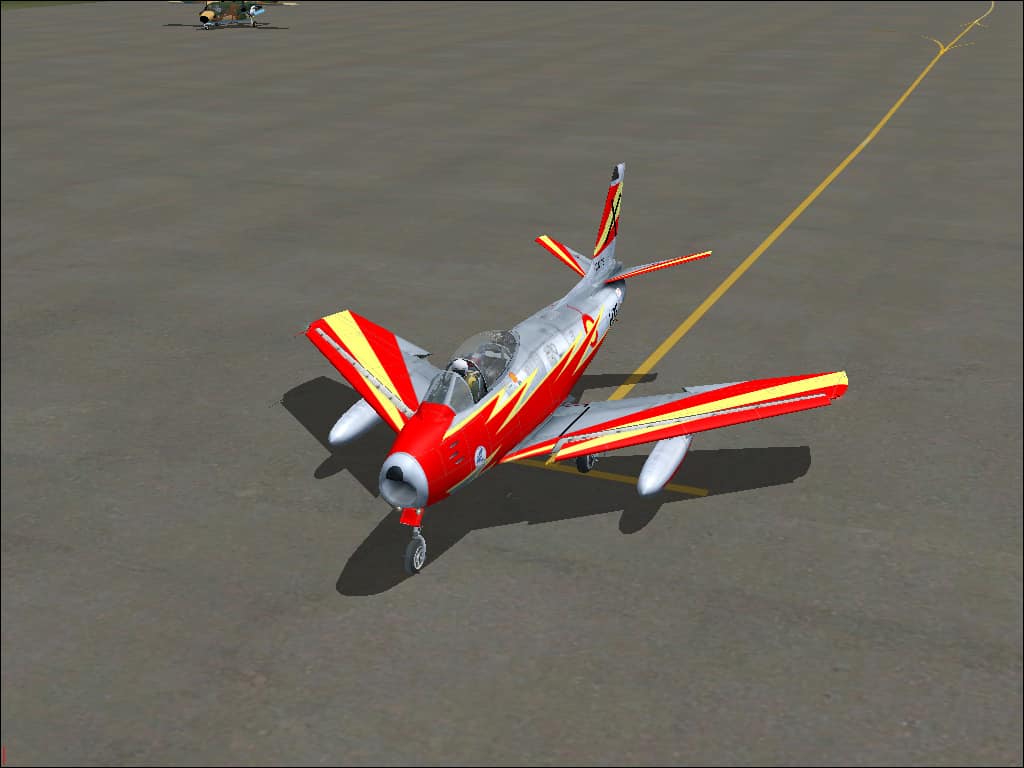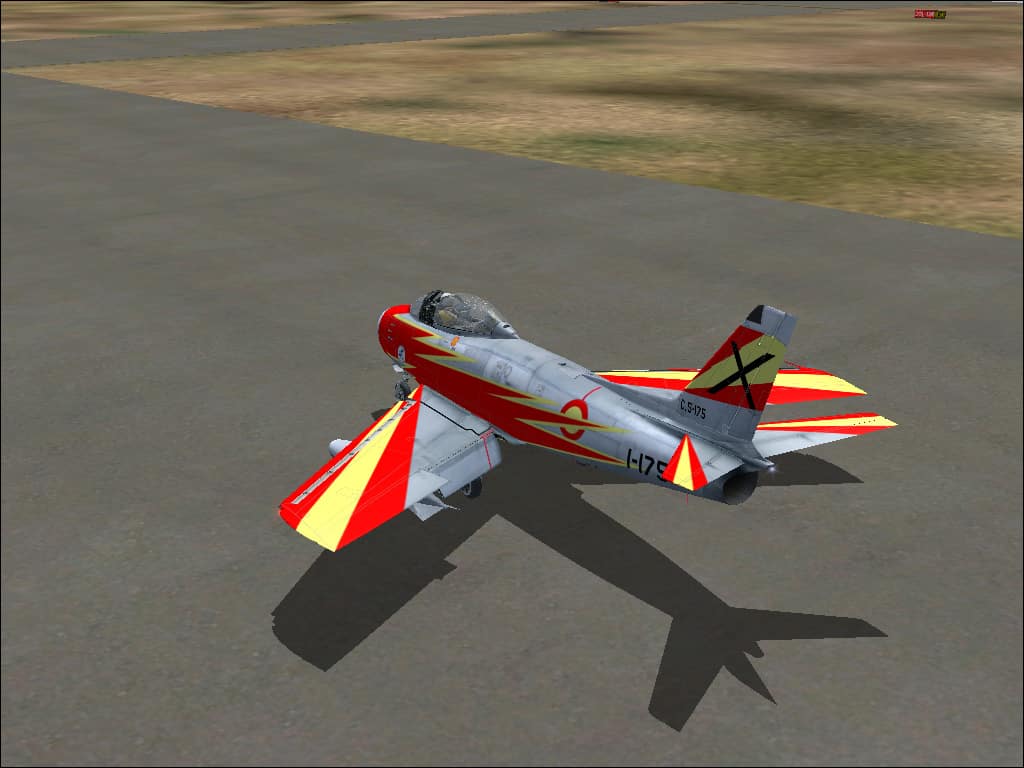 FS 2004 F-86F EJercito del Aire. Patrulla Ascua Textures only. aircraft from Kirk Olsson SABREJET.ZIP required here. Textures for an C.5 aircraft belonging to the Patrulla Ascua in their final livery (Ejercito del Aire). Repainted by Jose A. Arruga. 5.1MB