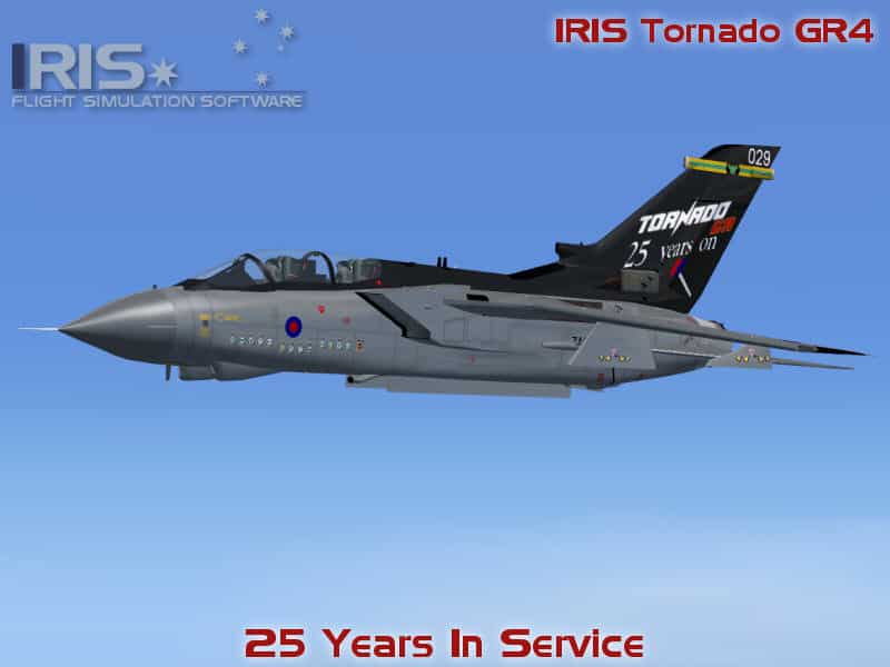 FS2002 / FS2004 Tornado GR4. 25 Years in Service special scheme Textures only. . This repaint requires the ex-payware IRIS Simulations Tornado V4 (here)Repaint by Andy Nott (AGN Textures / IRIS). 3.8MB