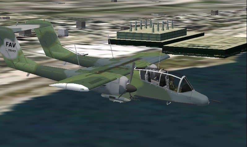 FS2002/2004 OV-10A Bronco FAV. This is a pack with two planes with different Schemes- (SLEP program Scheme and Low visibility Scheme) from the Grupo Aereo de Operaciones Especiales N°15 of the Venezuelan Air Force Textures: Daniel”Stinger”Borrego, flight dynamic modifications by Mike Sibley. Original model by Tim “Piglet” Conrad. Sound file by Aaron Swindle and mods by Leon Medado Panel by unknown author(s). 2.9MB
