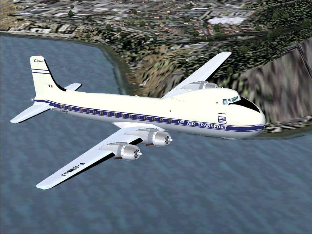FS2002/FS2004 Cie. Air Transport ATL.98 Carvair Textures only. This package contains all four Aviation Traders ATL.98 Carvairs which at various times between 1965 and 1972 have been operated by the French airline Compagnie Air Transport, i.g. Carvair #4 F-BMHU ‘Henri Malon’, Carvair #5 F-BMHV ‘Cdt Max Guedj’, Carvair #10 F-BRPT ‘Commandant Charles’ and Carvair #15 ‘President Gamel’. Initially CAT purchased the Carvairs for the car-ferry service Nice-Corsica, but soon they were also used for medium- and long-haul freight services. These are textures only. Requires ATL 98 Carvair V1.0 aircraft by Jon Walton. jwat98.zip (FS9 Version) here or jwat98_2k2.zip (FS8 Version) here. Textures by Jon Walton, revisions by Maarten Brouwer. 2.7MB