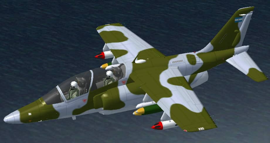 FS2002/FS2004 FMA IA-63 Pampa. The FMA IA 63 Pampa is an advanced trainer aircraft with combat capability, produced in Argentina by FMA with assistance from Dornier of Germany. Heavily influenced by the Dassault-Breguet/Dornier Alpha Jet design, the main difference of the Pampa lies in being a smaller aircraft with one engine instead of two, and in having straight wings instead of swept wings. The Pampa prototype first flew on October 6, 1984. Production has been delayed and hampered by the state of the Argentinian economy, and as a result only 20 production aircraft have been built for the Argentinian Air Force. Three kinds of models(Clean / with Pylon / with Weapon set) and two kinds of paint exsmples(Camouflage / ProtoType) are included. by Kazunori Ito. 3.1MB