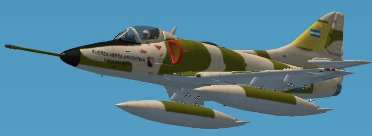 FS2002/FS2004 McDonnell Douglas A-4C Skyhawk. A-4 Skyhawk C type is the first model by whom the nose is extended to supplement the lack of an all-weather ability with incomplete radar, and the APG-53 radar for navigation/air-to-surface distance measurement is installed here. AJB-3 bombing calculation system, the TPQ10 ground control blindness bombing system, an autopilot, and various devices such as the angle of attack instruction machines are added at the same time and the improvement of the ability is aimed at. And it equipped with the ejection seat where the escape by the low sky had been enabled. Four kinds of models(U.S. NAVY and FUERZA AEREA ARGENTINA(FAA) / clean and with Tank) and two kinds of paint examples are included. By Kazunori Ito. 4.7MB