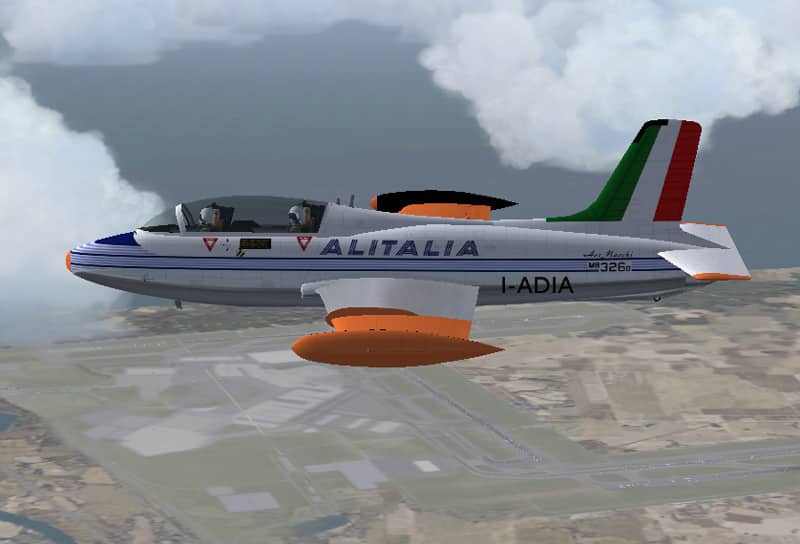FS2004 Aermacchi MB-326D Alitalia Textures only. FS2004 Aermacchi MB-326D I-ADIA, textured to represent one of the four aircrafts (D Version), used by ALITALIA during ’60 for future pilots training. Requires the original model by David Friswell (Macchi06.zip here). Repaint by Manuele Villa. 2.8MB