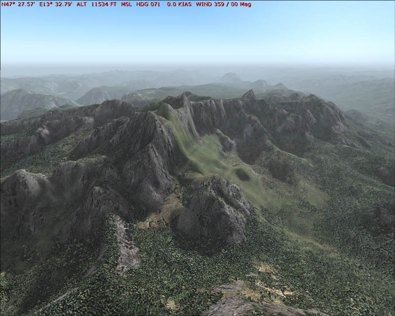 FS2004 Alps Mesh – Austria and Italy High-quality mesh NOT primarily based on the Shuttle Radar (SRTM) data with their incomplete coverage of prominent peaks and ridges. Instead, sources are detailed topographic maps processed by Jonathan de Ferranti and compiled for FS at LOD10 (38m) by Holger Sandmann. Also included are LOD9 and LO8 buffer mesh files. Fully compatible with FS2002. 75MB