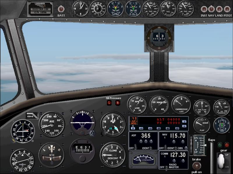FS2004 Amelia Earhart’s L10E Electra This aircraft is a customization, upgrade and optimization of Arik Hohmeyer’s fine L10E from FS-Design Berlin. The intent was to match it as closely as possible to Earhart’s L10E Lockheed Electra. Dave Bitzer’s research at the Smithsonian Institute in Washington, D.C. and independent work by Alex Nicolson resulted in over two-dozen flight-dynamics changes, including proper-capacity long range tanks. Norman Hancock designed two custom panels for this historic aircraft; a classic version with a Sperry AP and a modern one with a digital AP and more navigation equipment. The Cambridge Engine Analyzer, Sextant, Drift Meter, and pop-up E6-B computer are standard on both panels. Easy one-step install. By Dave Bitzer, Norman Hancock, and Charles Wood. Intended for use with Amelia Earhart’s 1937 World Flight Commemorative here. 10.1MB FS2004 Virtual Cockpit Upgrade for the Amelia Earhart Lockheed L10E Electra. This program will upgrade the fs9 Amelia Earhart Lockheed L10E by adding a Virtual Cockpit to both the Sperry Autopilot version of that aircraft and to the Modern Autopilot version. Before you can use this upgrade you must first have downloaded and installed the Earhart L10E Electra, filename l10eae01.zip. This VC is the work of Norman Hancock, who would like to thank Dave Bitzer for his help and encouragement. Thanks also to Arik Hohmeyer of FS-Design Berlin for his excellent L10E Electra, and to J. L. Stubbs for his faithful FS98 Earhart Panel; both were the basis of the Earhart L10E development. The VC Upgrade is a one-step install. 2.1MB