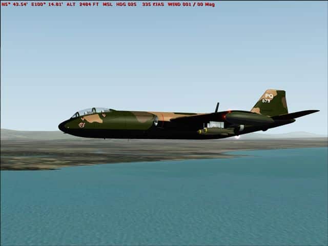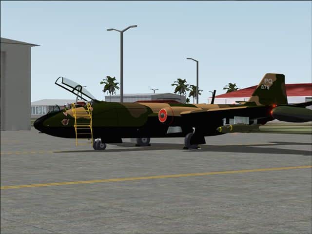 FS2004 B57B USAF Canberra Bomber (Fifth A/C in my Canberra series). Fully animated model. Animations include ejection sequence, opening bomb bay, bomb drop sequence, opening canopy plus parked aircraft chocks and engine blanks with boarding ladder. Full working virtual cockpit. Model, panel and textures by Bill Holker, Original air file by Dave Friswell. Modelled using FSDS 2.1 6.1MB