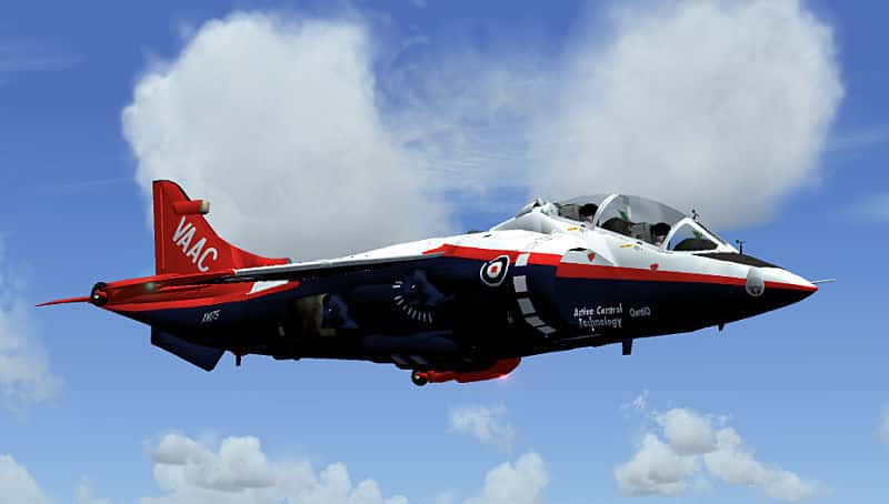 FS2004 BAE Harrier T4a VAAC. This is the two seat T4 version of the BAW Harrier. It comes in the Quintec Ripple colours. Under the hood of the latest Harrier is a revolutionary new system called vectored-thrust aircraft advanced flight control (VAAC). Designed by QinetiQ’s predecessor, DERA, with funding from the US-UK Joint Strike Fighter (JSF) Office, VAAC uses advanced “fly by wire” technology to turn over many of the Harrier’s flight characteristics to computers. This makes the aircraft much simpler to fly and enables engineers to fine-tune it quickly for improved handling, based on pilot feedback between sorties. It also provides valuable data for use in flight simulators. aircraft is by UKMILM att Baker and Matthew Ivey Textures are by UKMIL David Ulke. 2.5MB