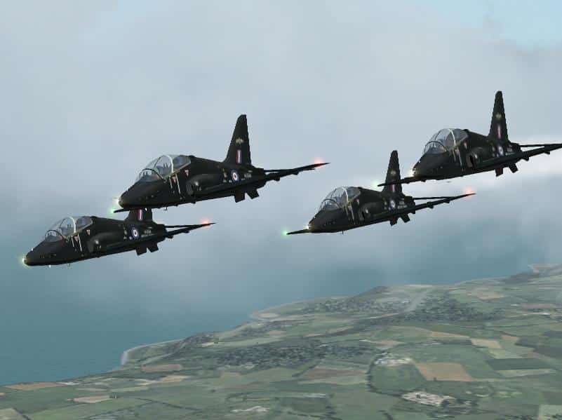 FS2004 ‘Black Seahawks’ Single and Four Compatibility Update Requires the FS2002 files BSHAWKS1.ZIP and BSHAWKS4.ZIP, which represent aircraft of the British Royal Navy’s FRADU Display Team, the “Black Seahawks”, operating from RNAS Culdrose, Cornwall. This small modification updates for use in FS2004 the panels of both the FSDS single and GMAX animated formation four BAe Hawk aircraft. By Mark Beaumont. File name: BSH_FS9.ZIP. 285K ** see panel fix below