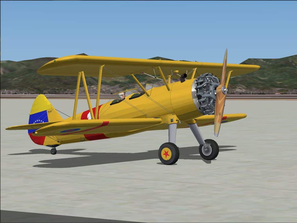 FS2004 Boeing Stearman Kaydet PT-13 FAV Textures only. Boeing Stearman Kaydet PT-13 FAV N°1 was the first operational trainer in the Venezuelan Air Force around the 50’s, before the becoming of the Mentor T-34A. Today is a beautiful museum piece to remember those pilots who learned to fly at this machine. Requires stear04.zip Stearman package here. Original file by David Eckert.Textures only. By Juan Ernesto Oropeza. 1.9MB