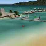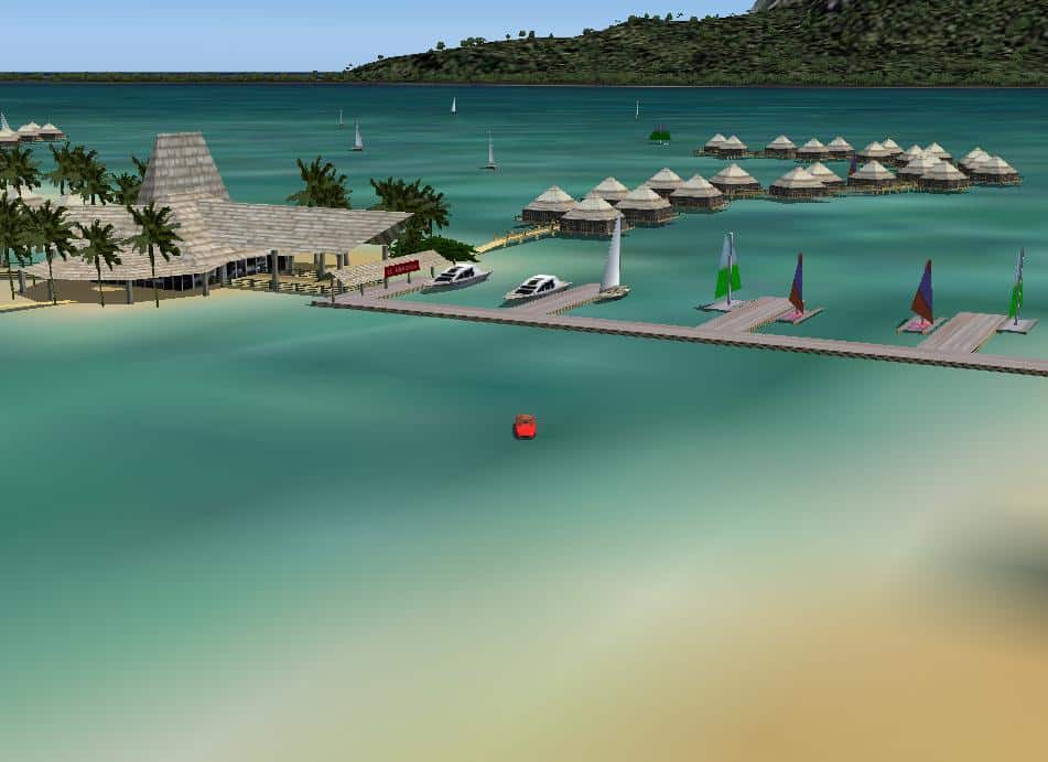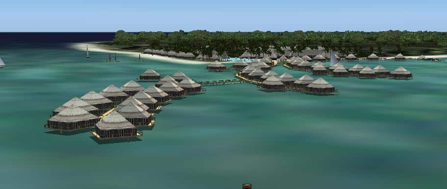 FS2004, Bora Bora Hotels V2 This is a mega scenery for the Island of Bora Bora. It includes the four major luxury hotels, the Le Meridian, The Sofitel Marara and Sofitel Marara Motu, and the Pearl Beach Resort. In addition it also includes the main village of Vaiatape, and the Bora Bora Yacht Club. They are all done in detail, and include full night lighting. Each hotel, the village and the yacht club have their own boat docks. Everything is placed in the proper location around the entire island. It is best viewed by taking an ultra light around the island, or using one of the downloadable boats, and then transfer to a car to explore them. You must have the Society Islands land/sea correction by James Thompson installed (above), or this scenery will not work correctly, and you will have hotels sitting out in the bay. . The terrain mesh by Rolf Keibel and John Applegate (here) must also be installed for the scenery to show up properly. By: Bill Melichar. 4.1MB