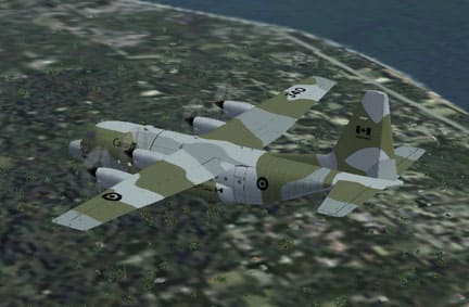 FS2004 CC-130 Lockheed Hercules CAF Textures. The Canadian Armed Forces operates thirty-two CC-130 Hercules. This package contains two textures for Mike Stone’s C-130 Hercules representing the new dark grey and tactical color schemes currently in use. Requires Mike’s original file sc130h.zip available here. Textures by Geoff Chambers. 416K