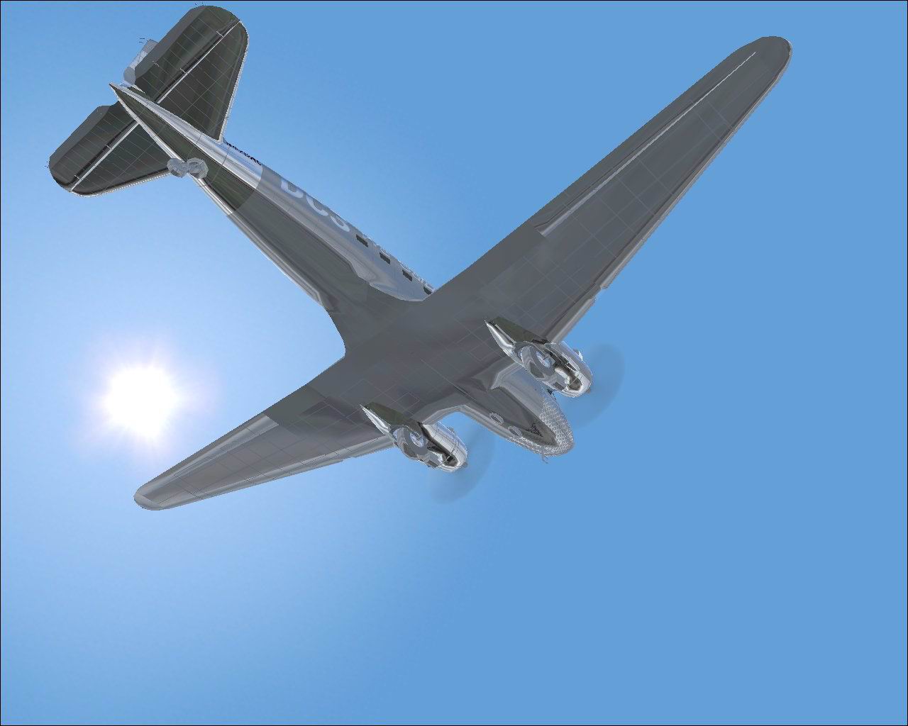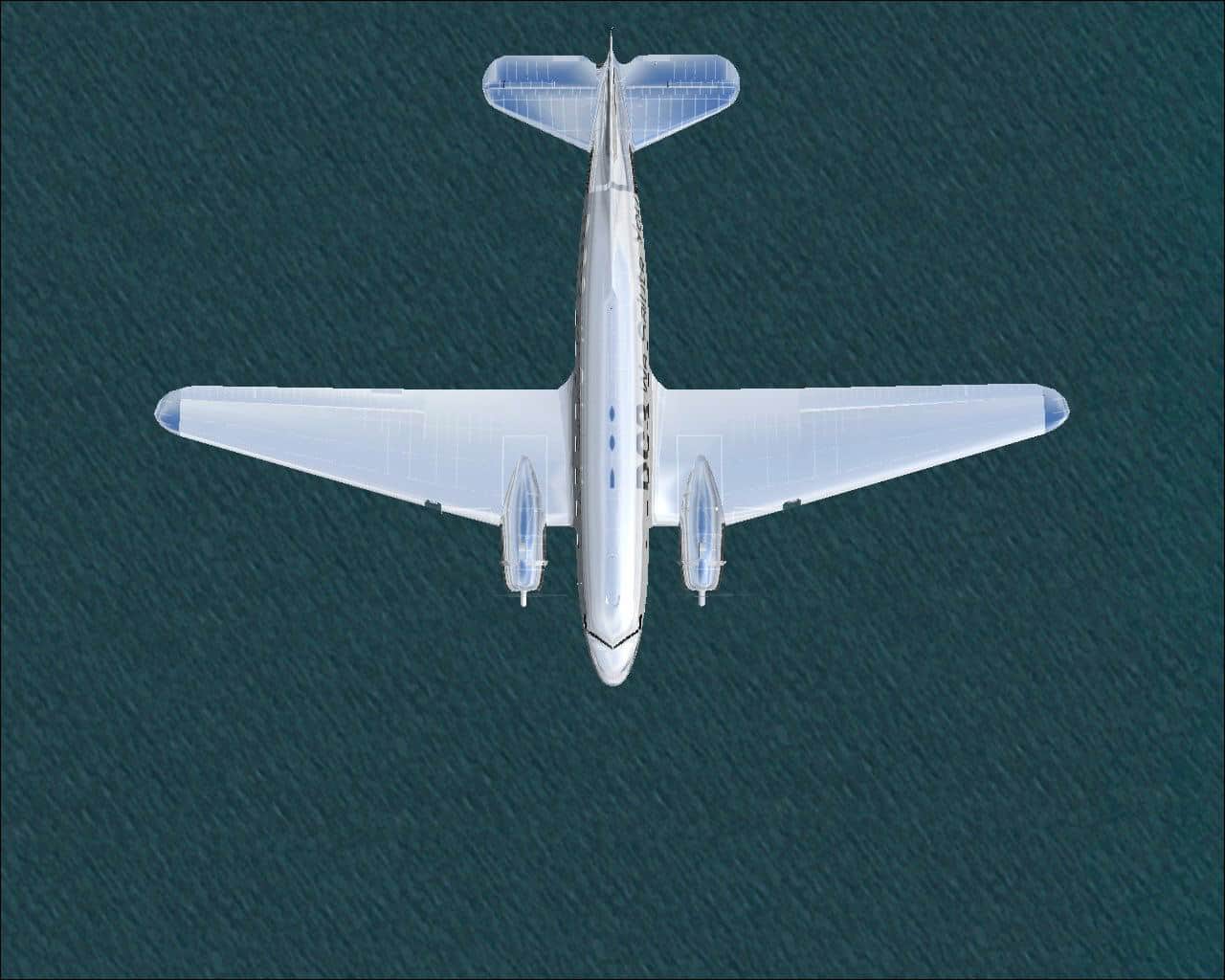 FS2004 Default DC3 Variation “DC3 We Salute You” This is the complete aircraft, the default DC3. To commemorate more then 65 years in service, the MSFS2004’s DC3 has had a complete make over. Its skin has been given an brushed aluminium look, with the tips of the wings and rear of fuselage in Chrome finish.. Textures by : Christopher F. Silva Francis F. Silva. 3.4MB
