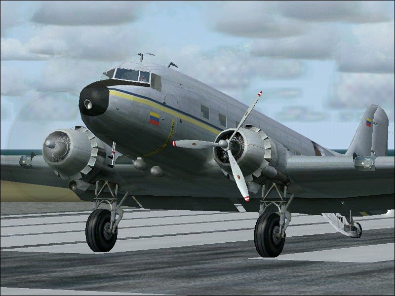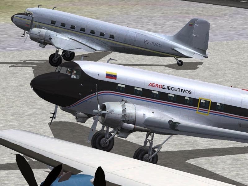 FS2004 Douglas Dc-3/C-47 Aeroejecutivos Fleet. Originally Delivered to USAF on Jan. 24 1943, this C47 YV-500C was the airplane that took a flight from Kabul (OAKB) Afghanistan, to Thompson (CYTH) Canada in 55 hours 30 minutes during several stopovers along Asia and Europe,commanded by Cap.Jack Lamb. This is the current livery of this legendary airplane. Being the latest acquisition of Aeroejecutivos, this Dc-3/C-47 YV-1179C was previously operated by ALIANSA COLOMBIA.\n\nCurrently, joined with the 500C, is the backbone fleet of Aeroejecutivos. By Roberto Leiro and Juan Ernesto Oropeza. 3.8MB