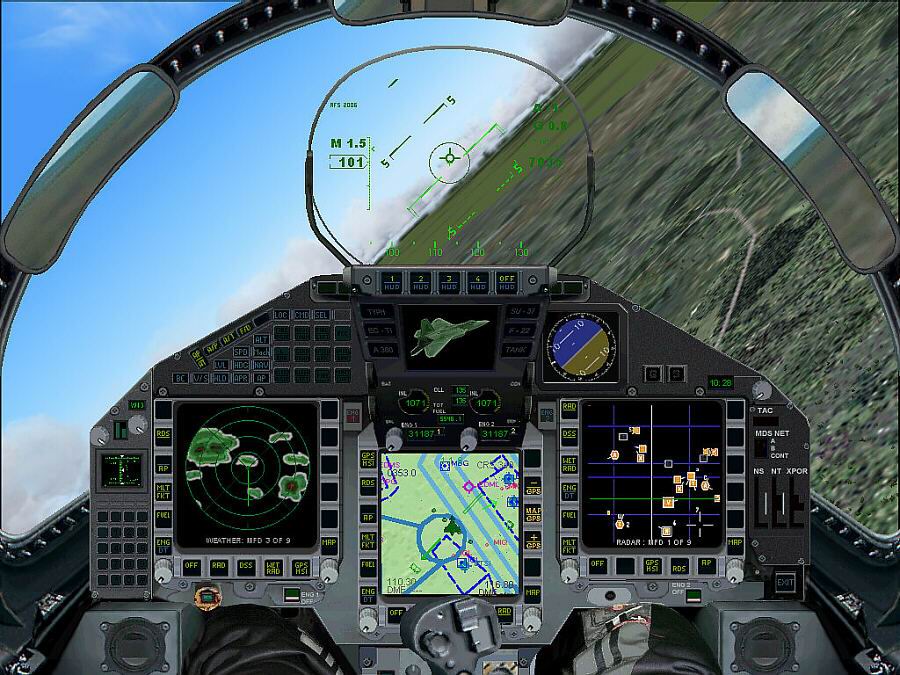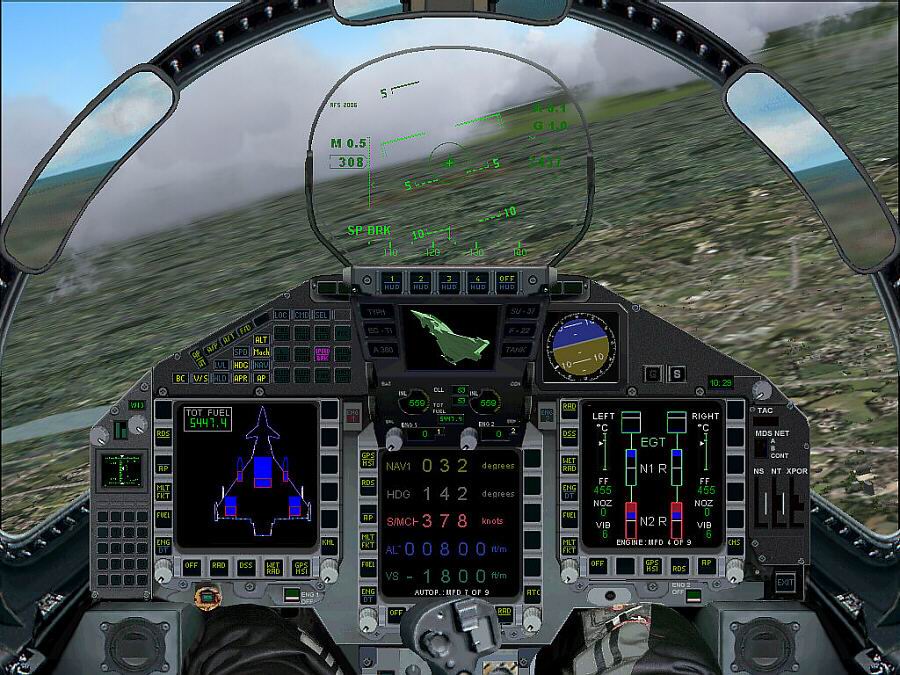 FS2004 Eurofighter Typhoon Panel. New Eurofighter Gauges: MFD 1: radar, MFD 2: DASS, MFD 3: weather radar, MFD 4: engines,MFD 5: fuel, MFD 6: multifunctionsgauge, MFD 7: autopilot, MFD 8: radios, MFD 9: new GPS HSI, And new Gauges: 4 HUD’s, exit and statusgauges AND signaturegauges of: Eurofighter, A380, Eurocopter Tiger, Sukhoi 35, F-22, tank, – Author: A.Meyer. 2.2MB