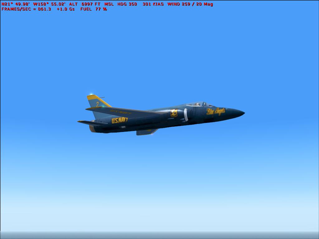 FS2004 F-11F Tiger Update. This is an update of the Grumman F-11F Tiger by Capt. I. D’Attomo and Capt. G.Quai. I have updated the flight dynamics, fixed the afterburners so they are automatic at about 90% throttle, added a trim gauge and effects control gauge to the panel, took some dirt off the canopy, added the 2nd nose wheel, and corrected the contact points. Requires the F11 Tiger. Bob Chicilo. 754K