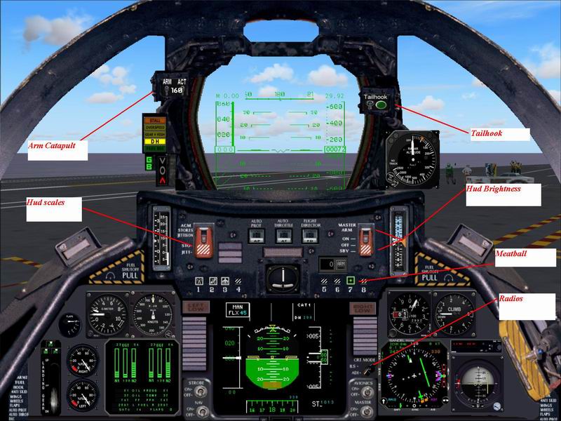 FS2004 F-14D Panel with integrated Aircraft Carrier catapult and Arresting gear gauges