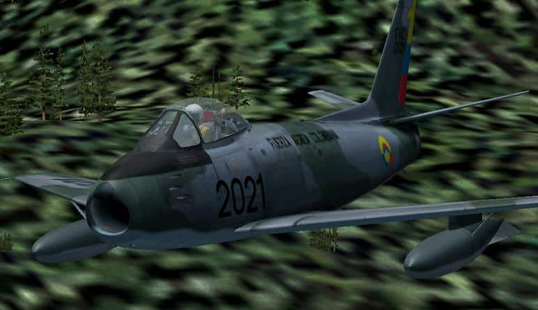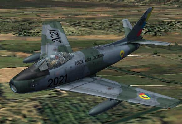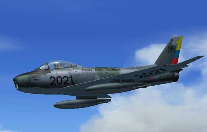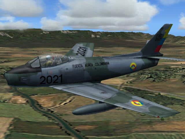 FS2004 F-86 Colombian Air Force Textures only. The Colombian Air Force bought 6 F-86F Sabre Mark Iv made in Canada by Canadair in 1956, this planes was the first super sonic fighter that arrive to Colombia. In 1963 the FAC bought another 4 American Sabres. This planes was earmarked to the main Air Base at Cacom 1, Palaquero, where they remain flying until 1967 when all the Sabre were withdraw from the operative service. Two Sabres were saved for the Catam’s Museum and for the Military Aviation School at Cali. These textures were made for his use with the Kirk Olsson’s Sabre (sabrejet.zip here) Original model by: Kirk Olsson Textures: Eduardo Fadul. 3MB