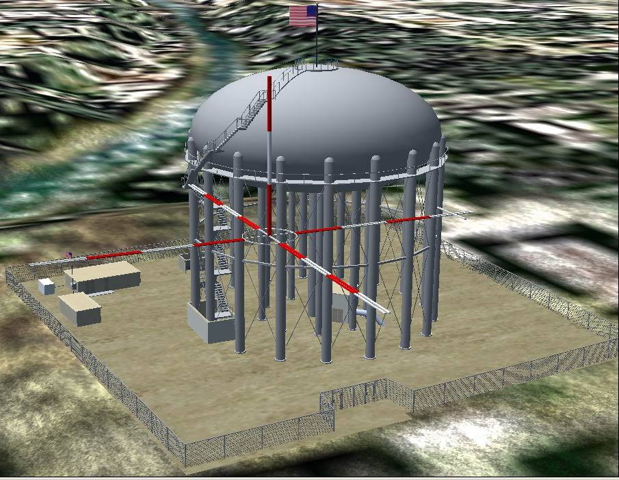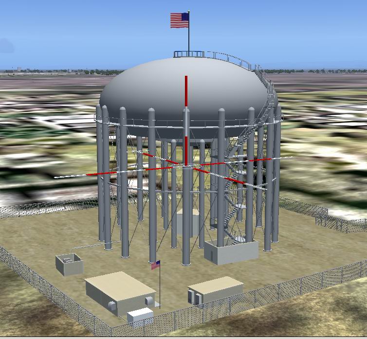 FS2004 Freeport, CA Reservoir. The Freeport, CA Reservoir is a 3 million gallon water reservoir located about 2 miles South of Sacramento Executive airport (KSAC) and is a prominent landmark used by the tower and pilots on approach to the facility. The tank is of welded construction and was built in the late 1950’s. It is 140′ tall, 126′ in diameter and stands on 27 support columns. As with my 2Q3 – Yolo County Airport, this has been done partly as a means of learning more about the ins and outs of GMAX and also to improve the Sacramento, CA area. Fred Zealor. 629K