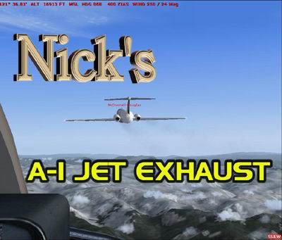 FS2004 and FS2002 FX: Nick’s A-I JET Exhaust with Cointrol Gauge. Hanging around the airport watching the A-I traffic and chasing A-I jet aircraft just got a little more interesting. Enjoy watching your entire A-I jet fleet as they display engine heat shimmer effects -after- push-back from the terminal and during taxi to the active runway. By Nick Needham. 693K
