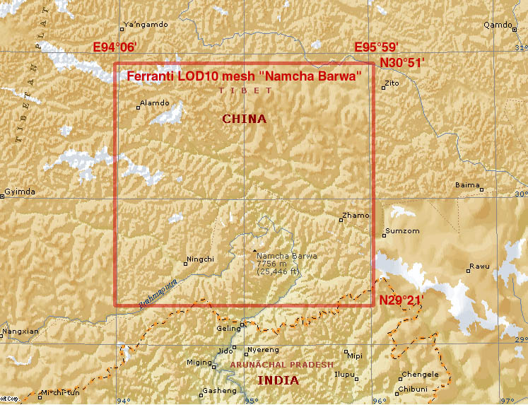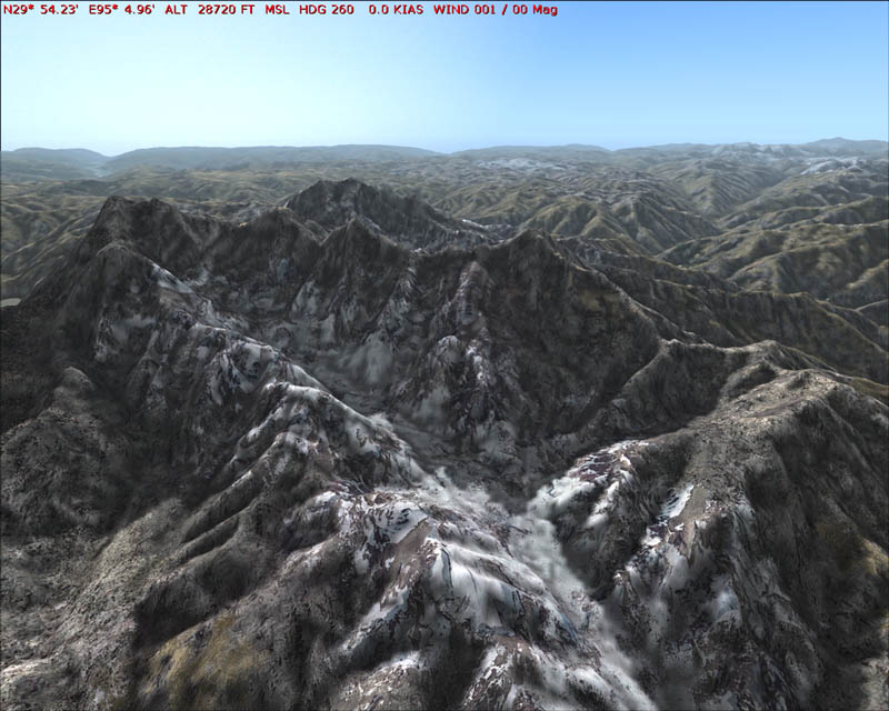FS2004 Himalayan Peaks Mesh – Namcha Barwa Highly detailed mesh based on Shuttle Radar (SRTM) data but with many of the void areas filled with elevation data generated from topographic maps by Jonathan de Ferranti. The “Himalayan Peaks” series contains LOD10 terrain mesh of prominent peaks and ridges. There will also be a LOD9 “base mesh” series of the Himalayas. Compiled for FS by Holger Sandmann. Fully compatible with FS2002. 15.4MB