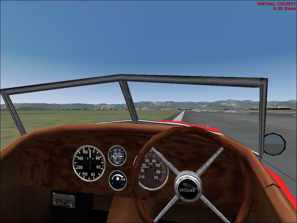 FS2004 Jaguar XK-120 Just for fun a classic personal sports car to explore all the beautiful scenery in fs2004!! Features fully animated virtual interior with working gauges and headlights. Fly to your favorite airport and switch to your Jag!! Brought to you by the Golden Eagles Squadron. Two versions: black and red. Assambled for 2004 by Alejandro Villa. 2.8MB