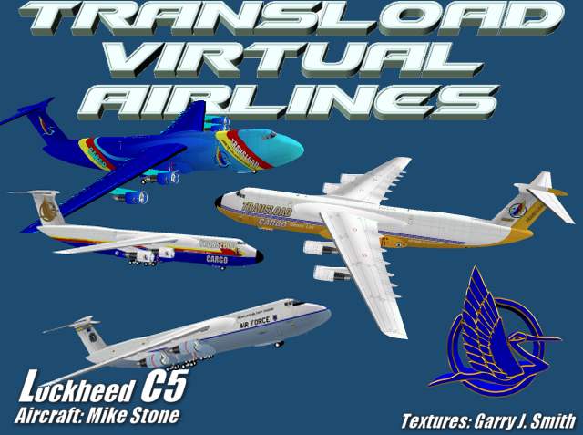 FS2004 Lockheed C-5 Galaxy Transload Airlines. – A heavy logistics military transport aircraft designed to provide world-wide massive strategic airlift. The CONUS-based fleet can provide delivery of palletized, oversized and outsized cargo, as well as passengers or combat-ready troops, anywhere in the world on short notice.Self installing executable file. Developed by Mike Stone and painted by Garry Smith model includes 4 seperate liveries. 11.7MB