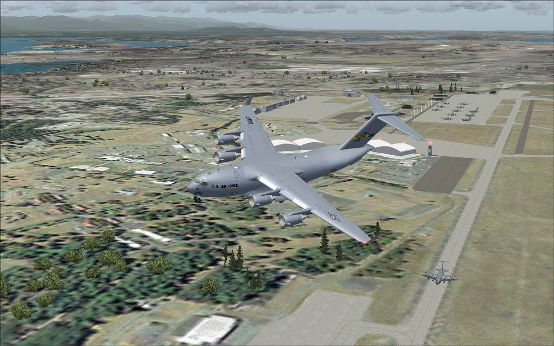 FS2004 McChord AFB (KTCM),Washington State. This version is a fix for users of Megascenery Pacific Northwest. All structures moved to fit visually with the photographic scenery. AFCAD file was re-done from scratch. Designed from first hand experience and satellite photos for accurate placing of all hangars, parking spots, taxiways etc. This base, south of Seattle is one of the primary USAF C-17 bases. By Brian Voigt. 6.5MB