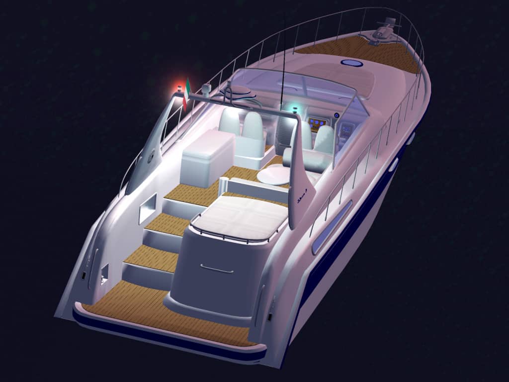 FS2004 Mediterranean180 Motoryacht V.1.0 A 18m motoryacht with full 3D exterior and interior, panel 2D and virtual cockpit. This is very detailed boat model made in 3DS MAX with ultra high quality smooting shape. By Robert Waszkiewicz – Deltasim Studio. 11.3MB