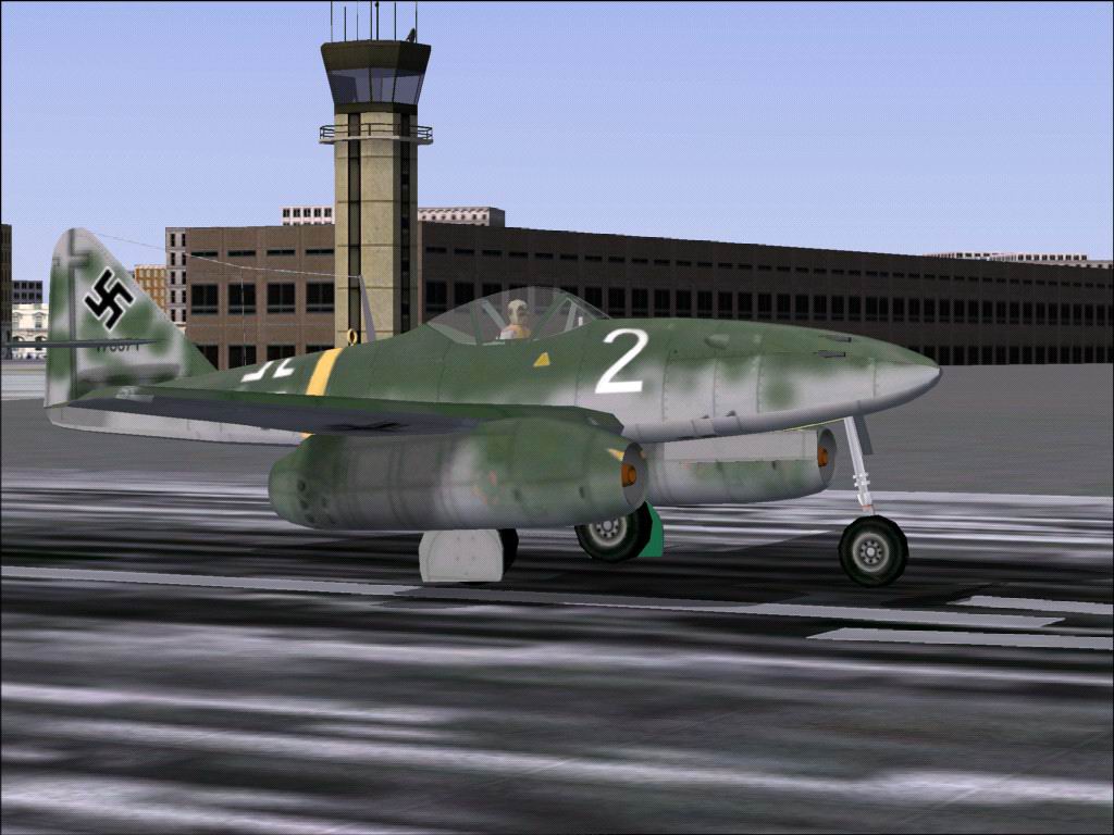 FS2004 Messerschmitt ME262A & ME262B_U1 Package. General: You are about to install the ME262 package which has the nostalgic style of the old machine but the comfort (qua gauges) of a modern jet plane. These ME262’s have the Airspeed indicator from the Boeing 737 and the altimeter and the heading indicator from the Cessna 208. They also have an autopilot capability. I changed the contact-points so the birds make contact with the ground and taxi the way they should. The sound-file is also improved so the Swallows sound like they must have sounded in the ancient times (i suggest you turn on your sound systems to maximum, unless you have old traumatised neighbours (in that case use headphones)). These aircraft, originally designed for CFS2, are now completely modified to operate fully in FS9. Flight Model By: Jerry Beckwith. Presented by R. Spaan. 12.9MB